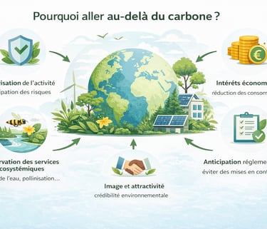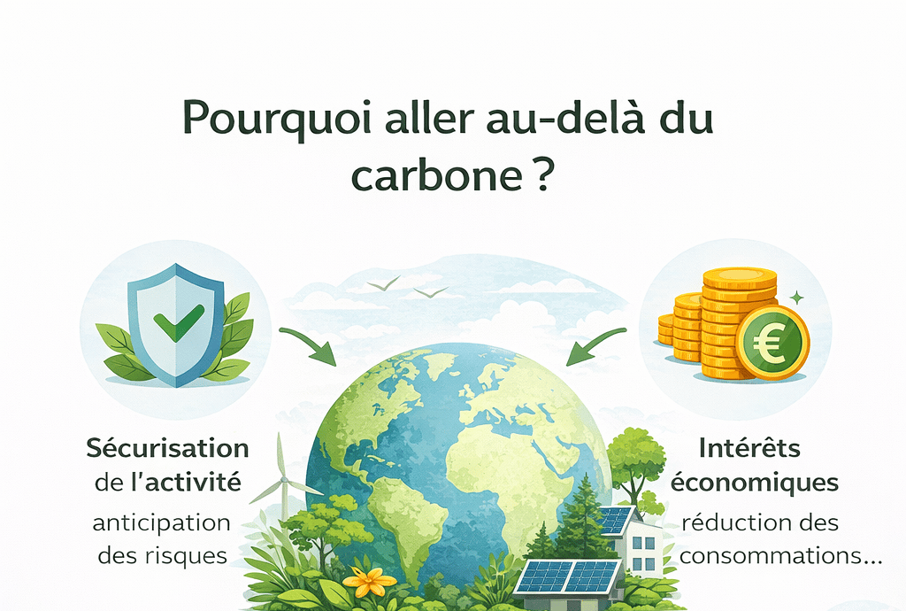 Aller au-delà du carbone permet de réduire les risques, maîtriser les coûts, préserver les ressources et renforcer la résilience et l’attractivité de l’entreprise sur le long terme.